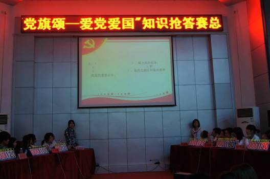 5月21日晚,学校建党90周年系列活动之“党旗颂——爱党爱国”知识抢答赛总决赛在匠成楼报告厅隆重举行。