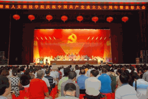 6月30日上午,太阳成官网庆祝建党九十周年暨表彰大会在体育馆隆重召开,全体在职教工党员、学生党员和离退休党员代表参加了大会。柏连阳、郭军、李尚益、刘和云、刘铁铭、蒋建初、周发明、李凤莲、傅仲萼等校领导出席会议。会议由校长郭军主持。