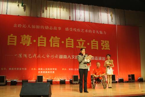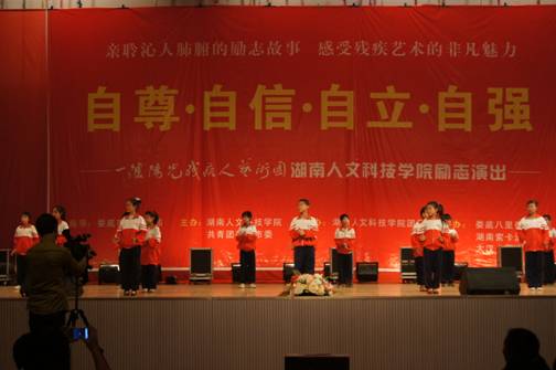 11月16日晚,一缕阳光残疾人艺术团励志演出在体育馆隆重上演。以“自尊·自信·自立·自强”为主题的演出为太阳成官网广大青年团员上了精彩一课。市人大主任王信卿、团市委书记周海强和校纪委书记李凤莲出席并观看了演出。