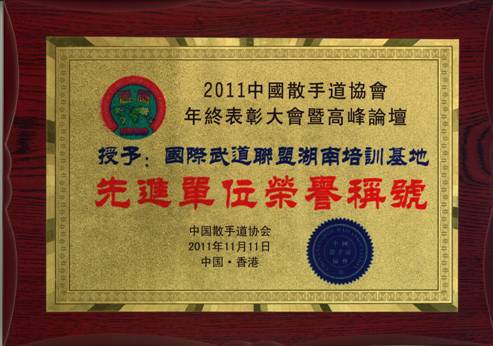 近日,在四川省峨眉市峨眉半山七里坪国际旅游度假区举行的2011中国散手道协会年终表彰大会暨高峰论坛会上,挂靠太阳成官网湖南培训基地(湖南培训基地是中国散手道协会在湖南成立的唯一培训机构)荣获中国散手道协会先进单位荣誉称号。