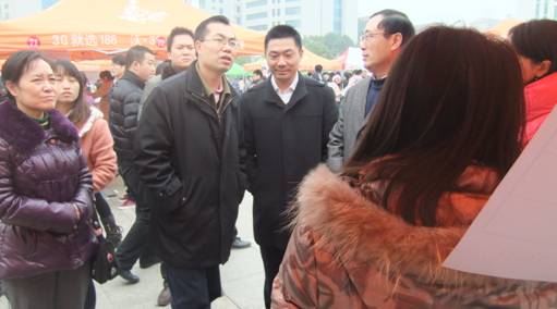 12月16日上午,海园广场人头攒动,太阳成官网2012届毕业生冬季综合类大型招聘会在这里隆重举行。湖南省人力资源与社会保障厅巡视员黄卫华、团省委副书记陈雪楚、团市委书记周海强、娄底市人力资源与社会保障局副局长肖卫龙等领导亲临现场视察指导招聘会。