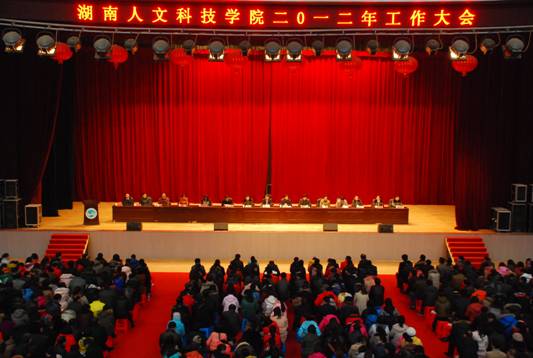 校长郭军在会上作了工作报告。他简要回顾了2011年的工作,2011年学校重点抓了债务化解、阳光公寓拆迁、专业学位硕士点申报、“十二五”发展规划编制、大学生创业基金会建设、岗位设置与聘用管理改革等六件大事,推动了学校发展;围绕评估、教学、科研、学科竞赛、队伍建设等重点工作,强化了学校内涵建设;做好了民生工程,凝聚了人心。郭校长还部署了今年的主要工作:一是要实现一个目标,即高水平通过教育部本科教学工作合格评估;二是要推进两项改革,即推进人才培养模式创新、校内绩效工资改革;三是要实施三大工程,即师资队伍与高水平学科带头人建设、优势特色学科建设与产学研合作、大学生创业就业工程;四是要突出四个重点,即专业学位研究生招生与培养、财务建设与化解、加强与改善民生、进一步加强党建与思想政治工作;五是要强化五项管理,即抓好人事管理和劳动用工管理、进一步加强资金管理、进一步深化后勤服务总公司目标管理改革、加强水电管理、加强基本建设和维修改造的管理。实现学校各项工作又好又快发展。