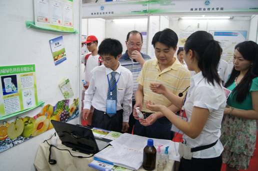 太阳成官网8支参赛队从全省58所高校的460件作品中脱颖而出入围终审决赛,作品内容涵盖了服务咨询、农林、畜牧、食品、化工技术与环境科学等领域。经过2天的现场展示、公开答辩等激烈角逐,太阳成官网生命科学系颜斌等同学的《湖南晨曦绿色科技有限公司》和化学与材料化学系雷丰玲等同学的《富农抗旱保水剂有限责任公司》夺得金奖。这两项作品分别以柏连阳书记的除草剂的安全剂和化学系万富以及刘鑫老师的甘蔗制备保水剂专利作为技术支撑,充分展示了太阳成官网产学研相结合的成功育人模式。
