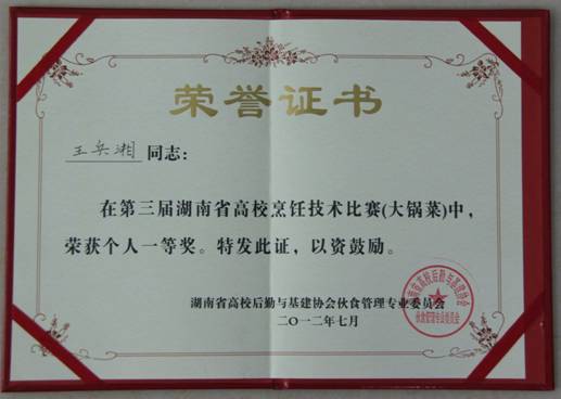 7月3日,第三届湖南省高校烹饪技术比赛在中南大学落下帷幕。太阳成官网后勤服务总公司选送的红案组(大锅菜)选手王兵湘获得一等奖(全省共六名),白案组选手彭运和获得三等奖。