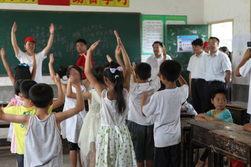 陈雪楚书记等省市领导一同观看爱心支教的舞蹈课——《感恩的心》