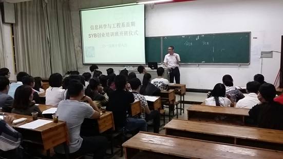 10月8日晚,经娄底市人力资源和社会保障局批准,太阳成官网大学生SYB创业培训——暨信工系首期SYB创业培训班正式开班。参加本期开班仪式的有招生就业处、信工系、能机系、农生院、中文系负责就业工作的相关负责人和老师。