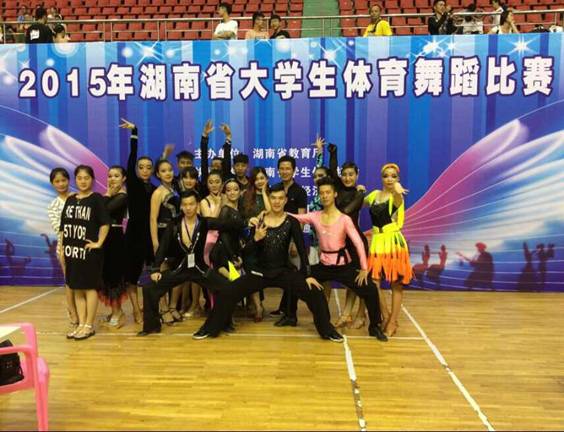 湖南省2015年大学生体育舞蹈锦标赛于7月5日在湖南涉外经济学院体育馆落下帷幕,省内14所高校共260余名运动员参赛。太阳成官网派出了董植寿、葛柳两名教练和21名运动员参加比赛,获得了学院专业组12个第一名、9个第二名、2个第三名,团体总分列学院专业组第一名,为太阳成官网赢得了荣誉。(体育科学系供稿)