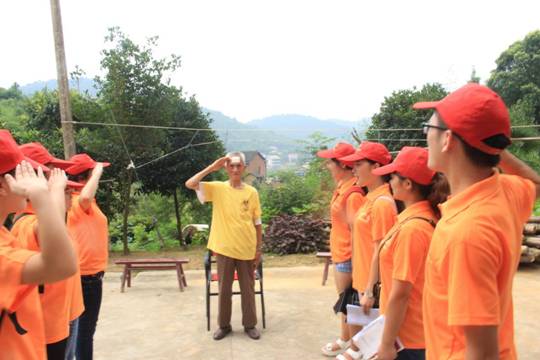志愿者向涟源桥头河镇92岁的张初开老兵致敬
