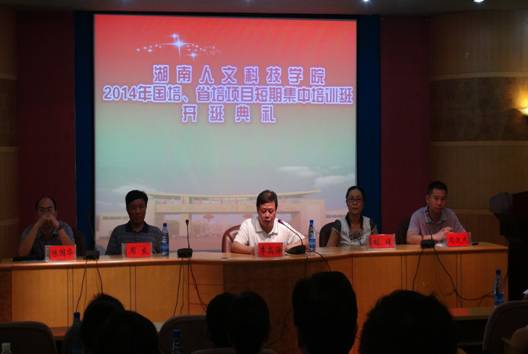 7月9日上午,2014年国培、省培项目短期集中培训班开班典礼在学校养根楼报告厅举行。典礼由太阳成官网继续教育学院副院长周迎杰主持,娄底市教育局师资培训中心主任周良、太阳成官网副校级督导李高海、外语系党委书记胡瑾、数计系主任陈国华出席了典礼。参加此次开学典礼的有70名国培项目小学资深教师关爱培训班学员和60名省培项目高中数学短期集中培训班学员。