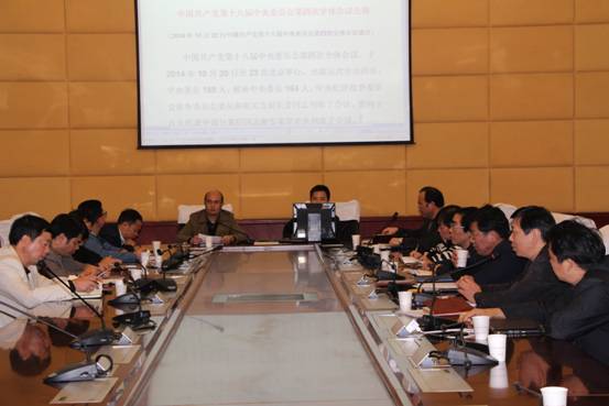 下午,党委中心组在图书馆第一会议室召开扩大会议集中学习十八届四中全会精神。全体校领导、中层正职干部参加学习。党委书记郭军主持学习活动。
