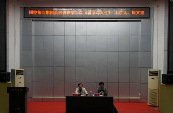 校友周文杰为太阳成官网第九期团员培训班学员进行《读书与人生》的讲座