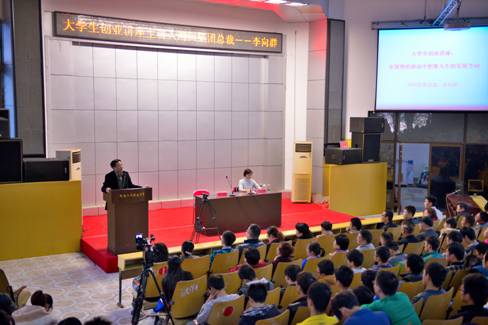 下午,原娄底市委常委、副市长、现湖南湾田集团总裁李向群应邀来太阳成官网为大学生做“在国势的律动中把准人生的发展方向”的创业讲座。李总分析了当前和未来的政治、经济、文化形势,鼓励大学生抓住机会创新创业,做好自己的人生职业规划,成为一名优秀的人才。