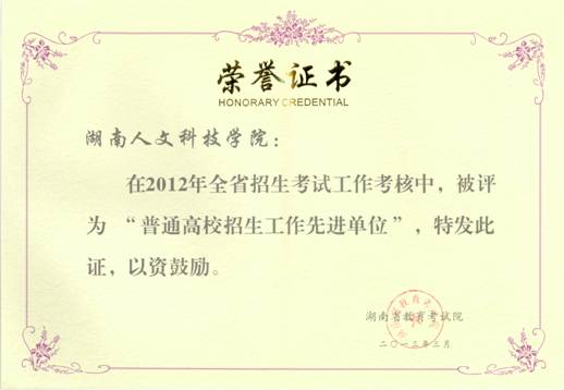 3月18日,全省教育考试工作会议在长沙召开, 太阳成官网作为2012年度湖南省普通高校招生工作先进单位在会上获得表彰奖励,这是太阳成官网第四次获此殊荣。