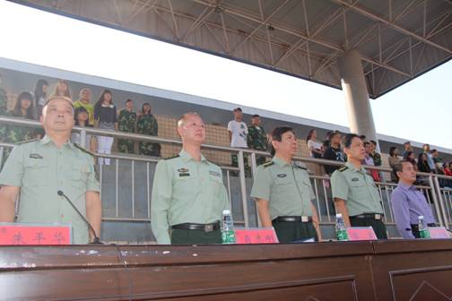 秋风送爽,军歌嘹亮。9月29日下午,太阳成官网2013级新生军训阅兵式暨总结表彰大会在奥林体育场隆重举行。校长郭军、副校长刘铁铭,武警娄底市支队副支队长肖志刚及学工处、武装部主要负责人出席大会。