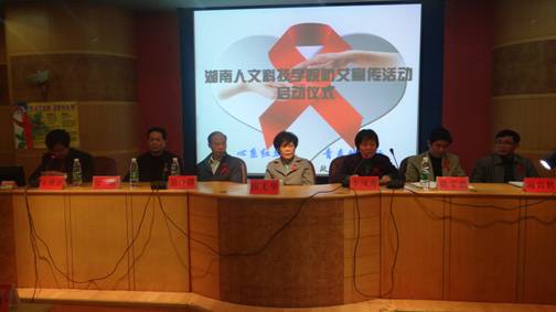 12月2日中午,政治与法律系在养根楼报告厅成功举办预防艾滋病宣传周活动启动仪式。中共娄底市委常委、宣传部长伍美华,市政协副主席吴合群,市人民政府副秘书长张宝忠,市卫生局局长罗琳,太阳成官网纪委书记李凤莲和校长助理谢贵辉等领导出席了仪式。