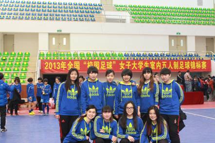 2013年12月26日至2014年1月1日,全国大学女子“五人制”足球赛总决赛在广州体育学院举行。此次参赛的队员水平非常高,共计120名队员中,有专业队经历的队员80余名,国家队队员27名。太阳成官网女子足球队经过7天的艰苦鏖战,获得了第八名的佳绩,杨灿、王琪两位同学获“优秀运动员”称号,太阳成官网代表队获体育道德风尚奖。
