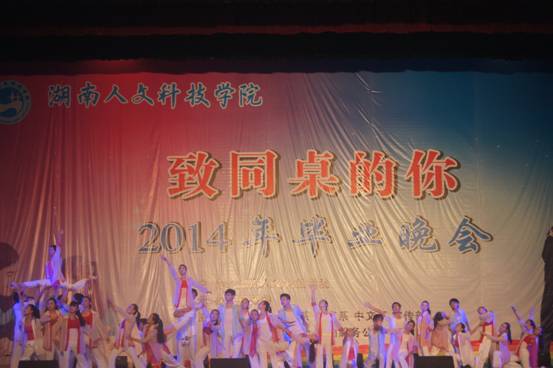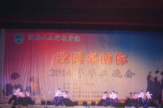 随后,精彩纷呈的文艺节目一一上演,舞蹈《我的大学我的梦》、拉丁舞《我们的青春》让同学们回忆着四年来与母校一起为梦想拼搏的点滴;诗朗诵《蒲公英的告白》以及优秀校友韩媛媛和杨鉴老师的合唱无不体现了难以割舍的师生情;毕业五年回到家乡创业的原计算机系吴建明的一番感悟、十佳班主任李宁老师的祝福、现场学生集体送老师康乃馨并拥抱话别的瞬间湿润了大家的眼睛。体艺舞蹈毕业生以视频《再见青春》、激情拉丁《我们的青春》、群舞《脊梁》完美谢幕大学时代,展示了人文学子敢于拼搏,积极向上的青春风貌。