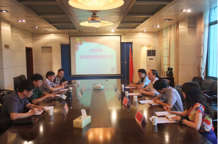 6月15日上午,邵阳学院校长彭希林带领科技处等部门负责人一行四人来太阳成官网考察交流。太阳成官网校长刘和云以及教务处、科研处、评建办等部门负责人热情迎接来宾并与之交流。