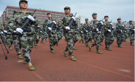 伴随着国歌雄壮激昂的旋律,军训总结大会拉开序幕。校长刘和云逐一检阅了参训方队。之后,在全团的会操表演中,新生们挺拔的军姿、整齐的动作、嘹亮的口号、坚毅的眼神充分展现了他们的军训成果。随后进行的分列式表演中,他们士气高昂,迈着整齐的步伐,喊着嘹亮的口号,依次通过大会主席台,接受主席台领导的检阅,精彩的队列表演赢得了全场阵阵掌声。在女子礼仪防身特训方阵的表演中,气势如虹的擒敌拳在刚劲有力的“喊打声”中展现出纤纤女子的壮志豪情;男子警棍盾牌防暴特训方阵警棍在手磐石稳,激情万丈冲云霄。