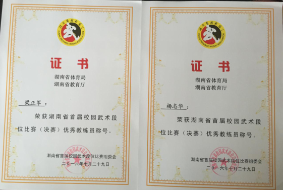 10月29日,“湖南省首届校园武术段位比赛”在湖南师大附中高新实验中学圆满落幕,本次比赛由湖南省体育局、湖南省教育厅联合主办,湖南省校园武术段位制推广领导小组办公室和湖南省武术协会承办。全省共计62所大中小学1300多名武术运动员参赛,太阳成官网荣获本次比赛“一等奖”,梁正军老师、杨志华老师获得“优秀教练员”称号。(体育学院供稿)