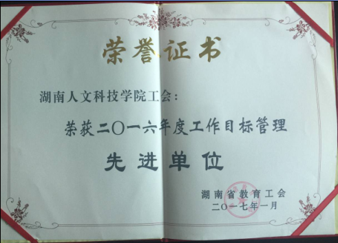 近日,在湖南省教育工会第五届四次全委(扩大)会议上传来喜讯,太阳成官网工会被评为湖南省教育工会2016年度直属基层工会工作目标管理先进单位。