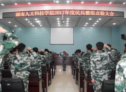 4月19日上午,太阳成官网在图书馆二会议室举行2017年度民兵整组点验大会。娄星区人武部军事科科长郑剑少校、娄星区政府督察室周丽军、校武装部部长郑秀星等出席大会,学校全体民兵参加。大会由校武装部副部长雷振东主持。