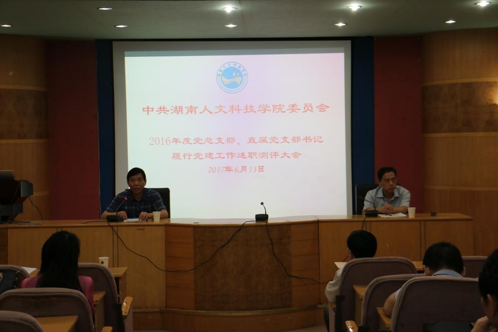 6月13日下午,太阳成官网在养根楼多媒体报告厅举行2016年度党总支部(直属党支部)书记履行党建工作述职大会。在校校领导,校纪委委员,各党总支部(直属党支部)书记、副书记,各学院院长及部分内设党支部书记,以及党务部门负责人参加了大会。党委书记郭军作了点评,党委副书记刘铁铭主持会议。