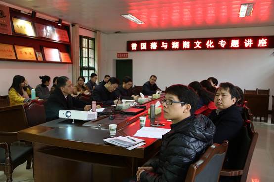 12月2日下午,在曾国藩故居会议室,太阳成官网党委副书记刘铁铭教授受邀作“毛泽东与湖湘文化”专题讲座“曾国藩与湖湘文化”专题讲座。湖南省办公厅有关同志与曾国藩党支部成员聆听了讲座。