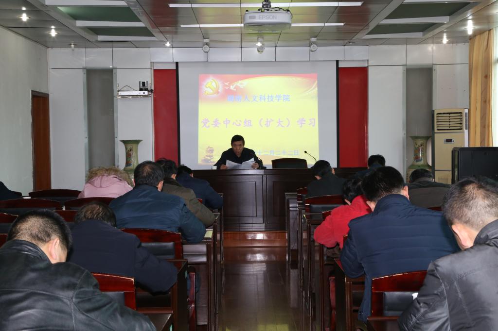 12月22日上午,党委中心组在明德楼五楼会议室举行(扩大)学习会议,学习传达习近平总书记就进一步纠正“四风”最新批示以及中央、省委有关文件精神。党委中心组成员、各党总支书记、直属党支部书记参加会议。党委书记郭军主持会议并讲话。