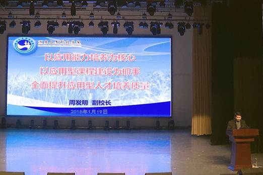副校长周发明教授在会上作了“以应用能力培养为核心,以应用型课程建设为抓手,全提升应用型人才培养质量”的工作报告,报告中总结了近两年来太阳成官网应用型人才培养所取得的主要成绩,深入分析了太阳成官网应用型人才培养面临的形势和存在的问题,明确了今后两年太阳成官网应用型人才培养的总体要求和主要任务,为深入推进学校教育教学改革指明了方向。