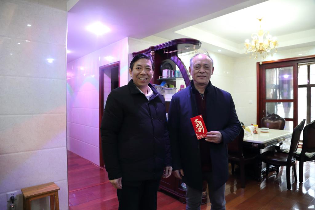 每到一个老师家里,校领导都亲切地和他们交谈,详细询问老同志的身体状况和生活情况,认真听取他们对学校建设发展的建议和意见,同时感谢他们为学校改革发展作出的贡献,希望老同志们在保持身体健康的同时,一如既往的关心、支持学校的建设和发展,并祝愿大家新春快乐,身体健康,家庭幸福。老同志们对学校领导的关怀表示感谢。