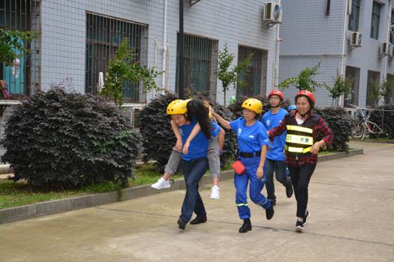 中午1点30分,第10号学生宿舍的同学们正在午睡,突然,地震警报声骤然响起,应急疏散演练正式开始。各个疏导员和安全员按照预订方案迅速进入到各楼层指定位置,紧急组织学生往安全出口方向进行有序撤离。在疏散过程中,娄底市红十字蓝天救援队也来到现场,同步进行“灾后搜救”、“紧急救护”等实战化救护演练。短短几分钟时间,近2000名学生全部撤离至应急避难场地。随后,由蓝天救援队队员为在场师生讲授了防灾减灾知识和应急避险自救互救的基本技能,并详细演示了止血包扎与心肺复苏的方法和步骤。