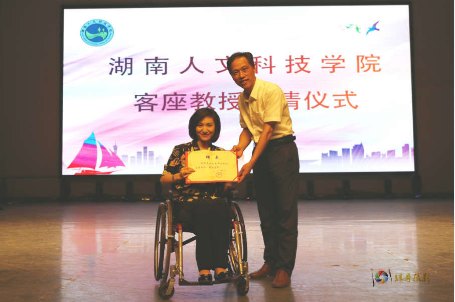 讲座现场,刘铁铭代表学校为梁艺颁发了客座教授聘书。一段精彩的VCR拉开了讲座的序幕,她以自身经历告诉大家面对人生挫折时,唯有坚持才能排除万难,迎接新生。她说道:“正是因为梦想,才有了现在的笑对生活;正是因为坚持,才有资格去追逐梦想。”现场在座的同学都被梁艺笑对困难的人生态度深深感染。讲座后,梁艺向在座学生代表赠送了自己撰写的书籍《阳光梁艺》。(文/团委 图/刘光辉)