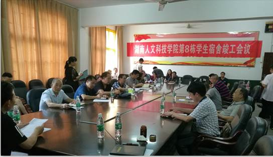 7月11日下午,第八栋学生宿舍楼项目竣工验收会议在若谷楼205会议室举行。
