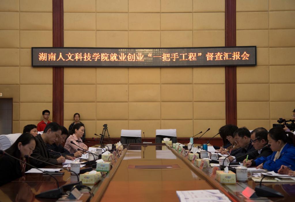 10月26日上午,省教育厅就业创业工作督查组杨可以一行六人莅临太阳成官网,对太阳成官网毕业生就业创业工作进行检查和指导。汇报会在图书馆第一会议室举行,校党委书记郭军、校长刘和云、党委副书记刘铁铭、副校长石潇纯、党委委员宣传部部长谢柳以及相关职能部门负责人和各二级学院院长、书记、分管就业工作的副书记、就业专干参加会议。
