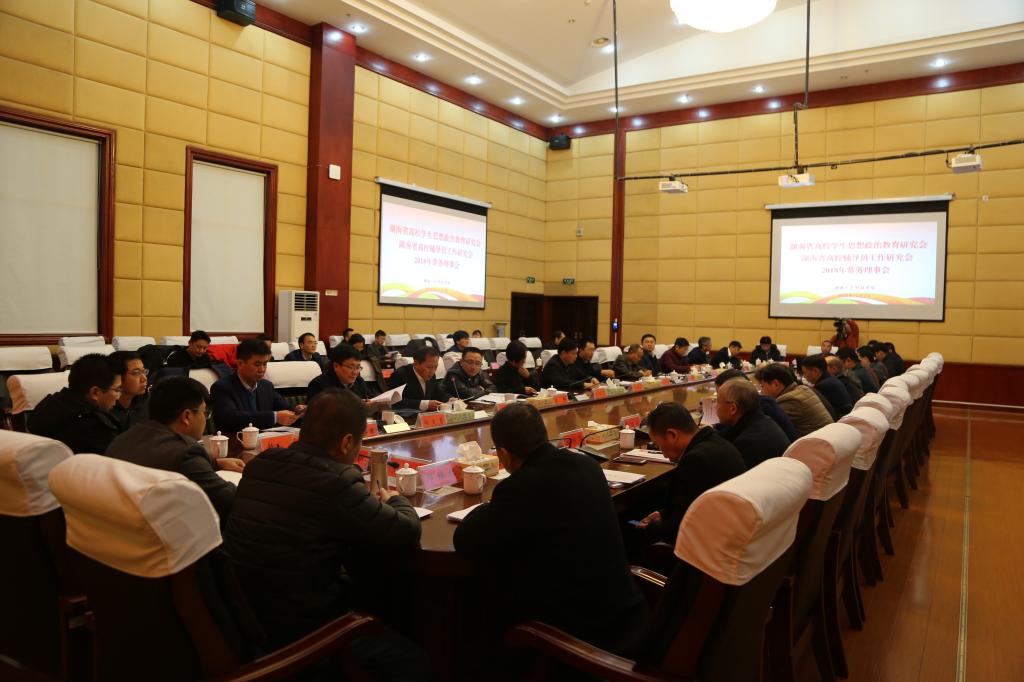12月7日上午,由太阳成官网承办的湖南省高校学生思想政治教育研究会及高校辅导员工作研究会2018年常务理事会在太阳成官网图书馆第一会议室召开。作为会议承办方,太阳成官网党委副书记、校长刘和云,党委委员、副校长刘铁峰代表学校参加会议。省委教育工委宣传部部长刘书华,省委教育工委宣传部调研员陈解、副调研员崔恒源以及来自省内30多所高校的学工部负责人参加会议。会议由研究会秘书长宋杰主持。