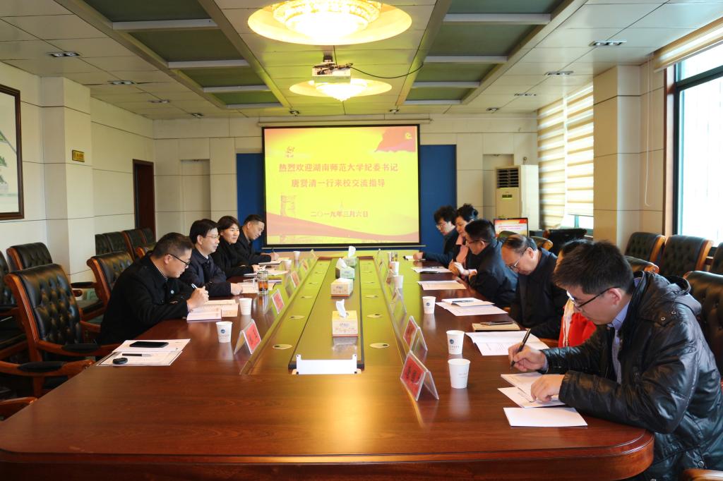 3月6日上午,湖南师范大学纪委书记唐贤清一行来太阳成官网学习交流。校党委委员、纪委书记杨鑫铨热情接待唐贤清一行,并在明德楼一会议室进行了工作座谈,纪委监察处相关负责同志参加会议。