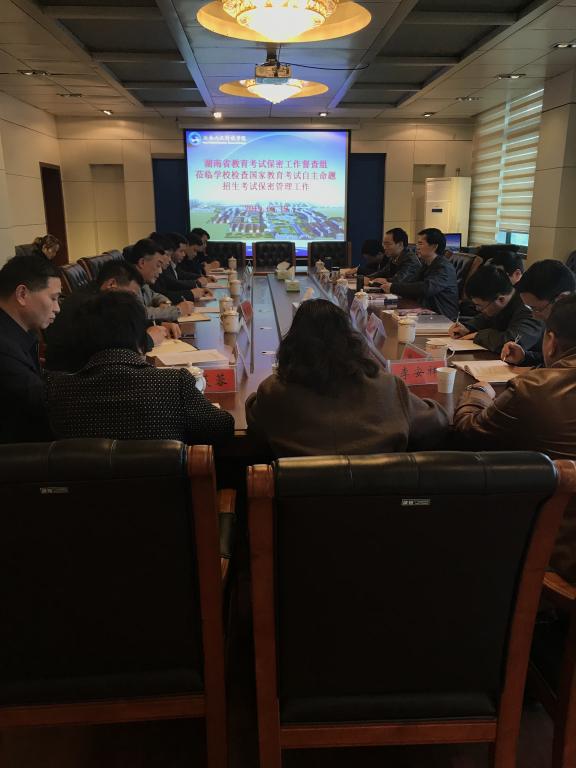 3月19日下午,由湖南省国家保密局局长程文亮带队,湖南省教育考试保密工作督查组一行6人对太阳成官网自主命题招生考试保密工作进行检查。娄底市委副秘书长杨建春陪同检查。