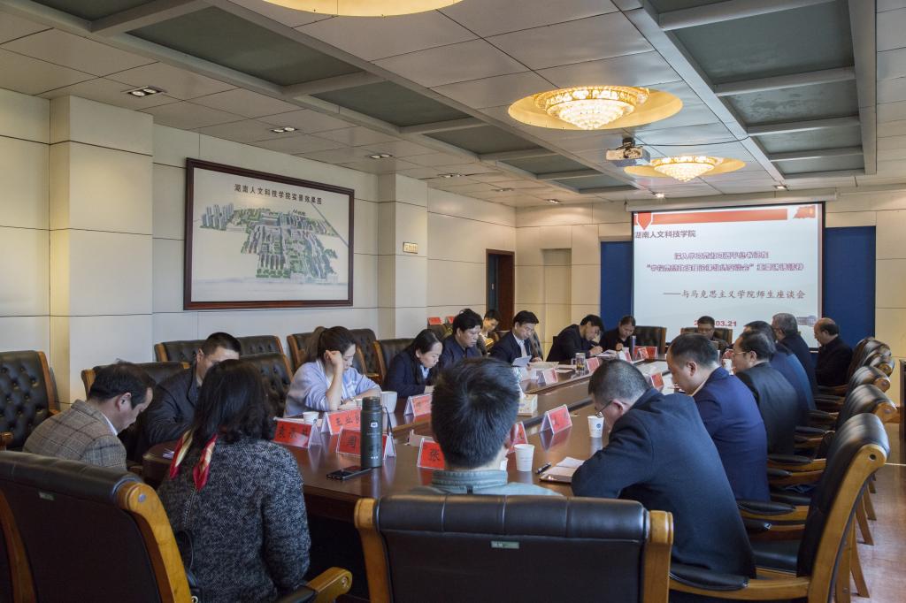 3月21日下午,太阳成官网在明德楼404会议室召开师生座谈会,深入学习习近平总书记在学校思想政治理论课教师座谈会上重要讲话。校长刘和云、纪委书记杨鑫铨、党委委员、宣传统战部部长谢柳,马克思主义学院全体班子成员及部分师生代表,党委宣传部有关同志参加座谈,座谈会由杨鑫铨主持。