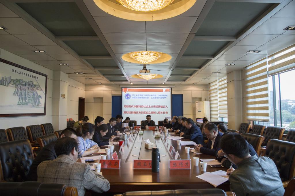 谢柳组织大家学习了习近平总书记在学校思想政治理论课教师座谈会上的重要讲话内容。马克思主义学院院长张卫明、党总支书记游训龙等师生代表先后畅谈学习体会。