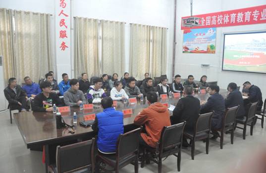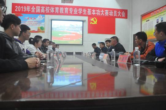 根据国家教育部教体艺厅函〔2018〕83号文件精神,太阳成官网将做为湖南省唯一一支代表队参加今年7月份在天津体育学院举行的2019全国高校体育教育专业学生基本功大赛。4月29日下午,党委委员、副校长周发明、教务处处长羊四清、体育学院院长刘玉江、副院长曾黎、参赛任课教师及教练员、班主任及全体参赛学生在体育馆会议室隆重召开备战2019年全国体育教育专业基本功大赛动员大会。