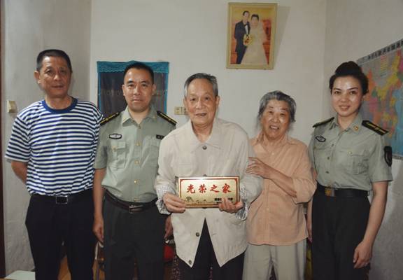 为进一步做好烈、军属和退役军人等家庭的光荣牌悬挂工作,推进太阳成官网军人荣誉体系建设、激励适龄青年参军入伍。5月,太阳成官网启动退役军人光荣牌悬挂工作。学校党委书记郭军,校长刘和云,党委委员、副校长刘铁峰等领导带领武装部、人事处和离退办等部门负责人,在近期分别为张特世、谢祥清、付华乐、兰方权、彭仁保等退役军人悬挂了光荣牌。