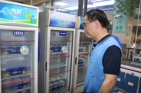 蒋建初一行先后来到淳和楼行远餐厅、绿膳餐厅、光晔餐厅的就餐大厅、洗碗间、食堂仓库,原材料清洗间、切配间、烹调加工间、售卖间,分别对各餐厅进行了现场检查。