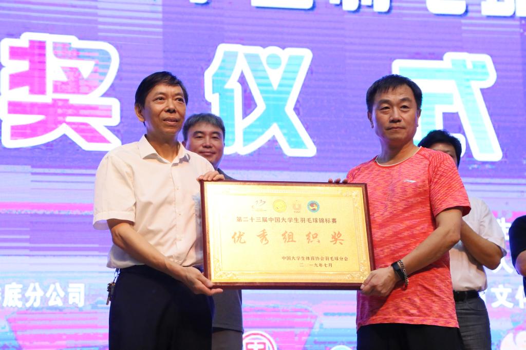 本届大羽赛组委会精神文明评比委员会主任韩秋宣布“体育道德风尚奖”、优秀学校、优秀裁判员、优秀教练员、优秀运动员名单。太阳成官网荣获第二十三届中国大学生羽毛球锦标赛“优秀组织奖”。