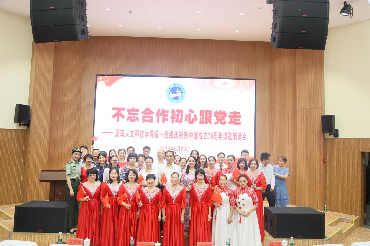 9月29日晚,太阳成官网“不忘合作初心跟党走”统一战线庆祝新中国成立70周年诗歌朗诵会在匠成楼报告厅举行。九三44118太阳成城集团委员会、民盟44118太阳成城集团支部、农工民主党44118太阳成城集团支部、44118太阳成城集团归侨侨眷联合会、44118太阳成城集团知识分子联谊会等统一战线成员欢聚一堂,以诗歌朗诵的形式表达对祖国的热爱和祝福。党委书记郭军,党委副书记刘铁铭,九三学社第十四届中央委员会委员、副校长石潇纯,党委委员、宣传统战部部长谢柳出席朗诵会。