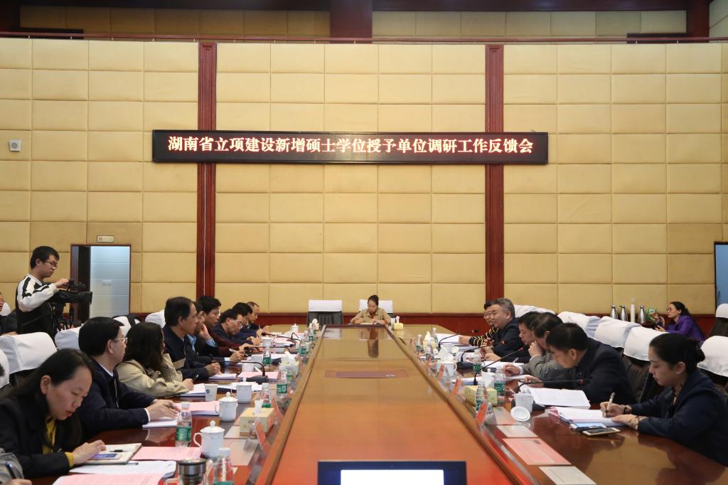 11月7日下午,湖南省教育厅学位管理与研究生教育处副处长唐利斌,南华大学原党委书记邹树梁,湖南师范大学学位办主任杜继军,中南林业科技大学研究生院常务副院长项文化,南华大学研工部部长陈熙,湖南省教育厅学位管理与研究生教育处戴菀珊一行六人来太阳成官网调研。全体在校校领导出席会议,邹树梁主持会议。