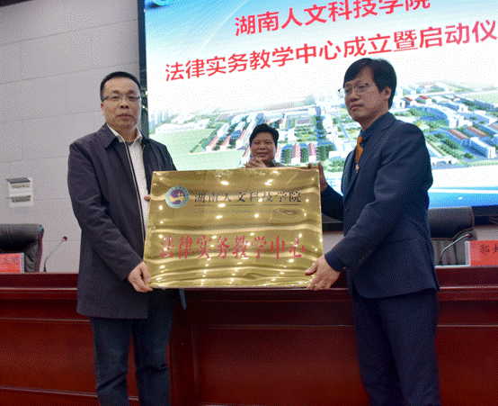 启动仪式上,刘和云向法律实务教学中心主任郭超群博士颁发了特聘教授聘书,并向法律实务教学中心授牌。会上,来自娄底司法界的二十位精英受聘担任法律实务中心兼职教师。