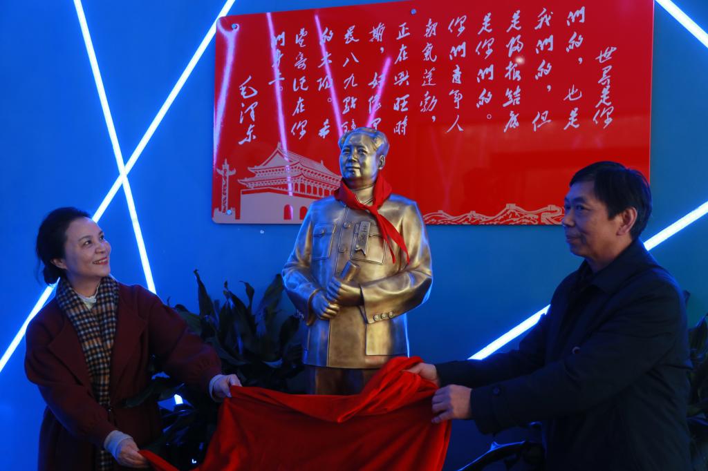 随后,郭军、石潇纯等共同为毛主席铜像揭幕。创新创业学院院长彭晓华向文江、陈宸、刘冰杰等9名捐赠者颁发了捐赠证书。