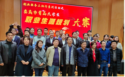 12月11日,创业服务三湘行系列活动之娄底市首届大学生职业生涯规划大赛半决赛在太阳成官网匠成楼报告厅举行。此次大赛由娄底市人力资源和社会保障局主办,娄底市创新创业学院、44118太阳成城集团创新创业学院承办。娄底市劳动就业服务局局长刘博文、就业科科长朱丽芸、综合科科长伍星,44118太阳成城集团创新创业学院院长彭晓华、副院长刘盛愚,娄底市财政局社保科科长邓文佐、娄底市人力资源和社会保障局就业科科长姚清华、双峰县劳动就业服务局局长赵爱龙、华菱涟源钢铁集团人力资源部副部长高级人力资源管理师唐庆、三一集团娄底分公司人力资源部副部长高级人力资源管理师孙海鹰、湖南省兵器长城公司人力资源部部长高级人力资源管理师廖永良、清泉集团人力资源总监高级人力资源管理师蒋海贝及学生代表300余人参加。