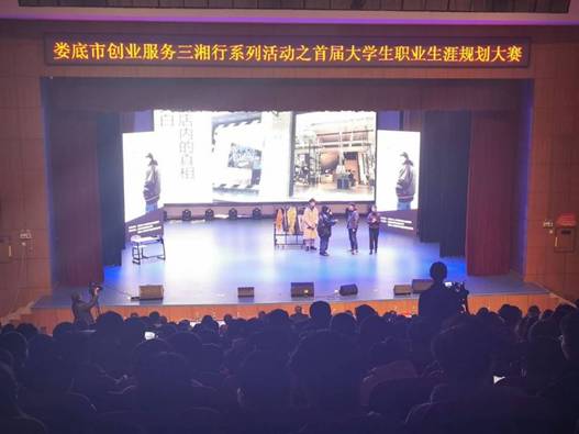 本次大赛自2019年10月份启动,历时三个月,娄底市各学校广泛组织动员,吸引了众多参赛选手,经过激烈的初赛、复赛,各校推送的27名选手进入了半决赛,最终8位选手成功晋级总决赛。总决赛分为职业生涯规划展示和情景模拟两个环节。参赛选手结合PPT展示了对自己职业生涯的预想及假设,并详细制定出职业生涯切实可行的目标及实施方案。同时,8位选手就自己的生涯规划进行了情景模拟,精彩的编排和风趣的表演给评委和现场观众留下了深刻印象。
